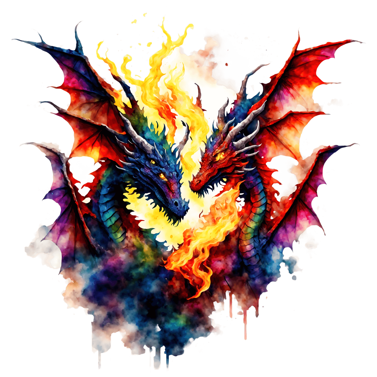 Hình ảnh này giới thiệu một tác phẩm nghệ thuật độc đáo có hai con rồng đầy màu sắc được sắp xếp theo thiết kế hình trái tim. Những hoa văn phức tạp và màu sắc rực rỡ trên cánh rồng cũng như những ngọn lửa xung quanh chúng tạo nên một bố cục có hình ảnh ấn tượng. Tác phẩm nghệ thuật này là minh chứng cho tầm nhìn sáng tạo của nghệ sĩ hoặc nhà thiết kế đồ họa đã tạo ra nó.