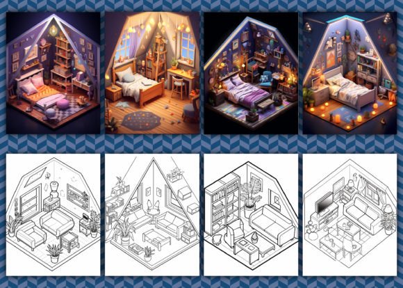 Mỗi trang tô màu được thiết kế để kích thích sự sáng tạo và mang lại niềm vui trong việc tô điểm các đường nét và chi tiết của các phòng nhỏ. Độ rõ ràng của hình vẽ và không gian tô màu rộng lớn giúp tạo điều kiện thuận lợi cho quá trình tô màu và thúc đẩy sự thư giãn.