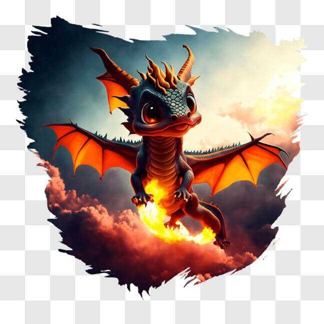 Hình ảnh này mô tả một con rồng đầy màu sắc ngồi trên ngọn lửa. Con rồng được minh họa bằng màu sắc tươi sáng, với đôi cánh dang rộng và cơ thể bao phủ trong ngọn lửa. Đó là một hình ảnh sống động và bắt mắt, hoàn hảo để sử dụng trong sách, truyện tranh hoặc tiểu thuyết đồ họa dành cho trẻ em.