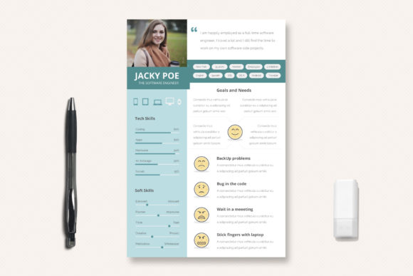 Thiết kế dựa trên các tiêu chuẩn hình ảnh hiện đại sử dụng biểu tượng cảm xúc để giải thích điểm đau tâm trạng cảm xúc của người dùng, các biểu đồ tuyến tính với tất cả các phần trăm đã được bao gồm, và biểu tượng và thẻ để đảm bảo rằng thông tin dễ quét và hiểu đối với cả đội ngũ. Nó sẵn sàng để chỉnh sửa và sử dụng chỉ trong vài phút, ở định dạng in hoặc web. Nó dễ dàng sửa đổi, chỉnh sửa văn bản, màu sắc, kết hợp biểu tượng, thay đổi biểu đồ, di chuyển hoặc xóa các yếu tố, chơi với các texture và sử dụng ảnh riêng của bạn để có một sự tùy chỉnh hoàn hảo.